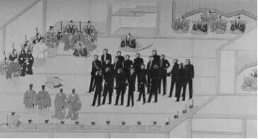 1859年德川幕府将军和他的官员接见第一任美国大使汤森 ·哈里斯的情景。
